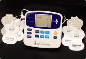 Low Frequency Dual Channel Massager - The XFT Gold Hand Electronic Low Frequency Massager - a bioelectric neuromuscular stimulating device - presents the user with an effective relief of pain through unique massage and acupuncture delivered by effective application of low frequency waves via self-adhesive skin electrodes. The unit has been designed to provide an enjoyable and relaxing massage or deliver non-invasive acupuncture resulting in a relief of musculoskeletal pain and discomfort any time and any where. Massage is a proven method of pain and stress relief. It helps to reduce tension, minimise swelling and muscle soreness and helps to speed up healing of certain injuries.